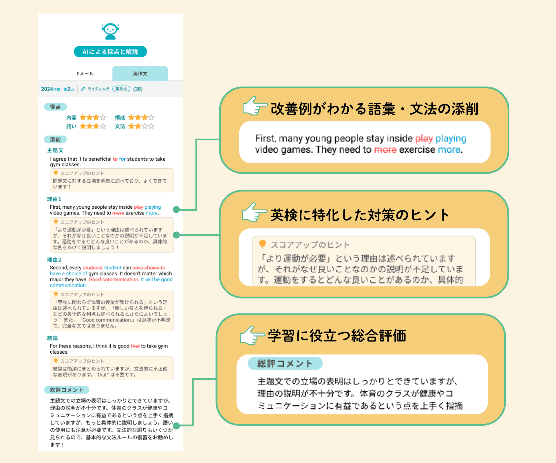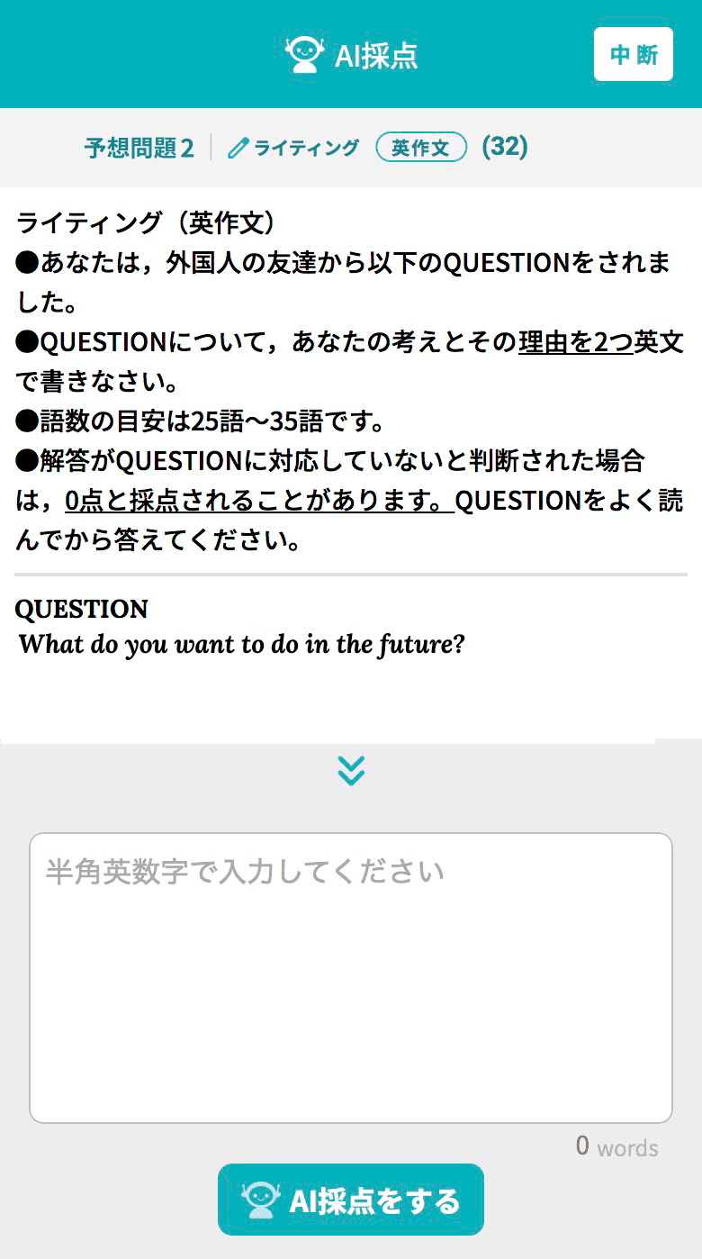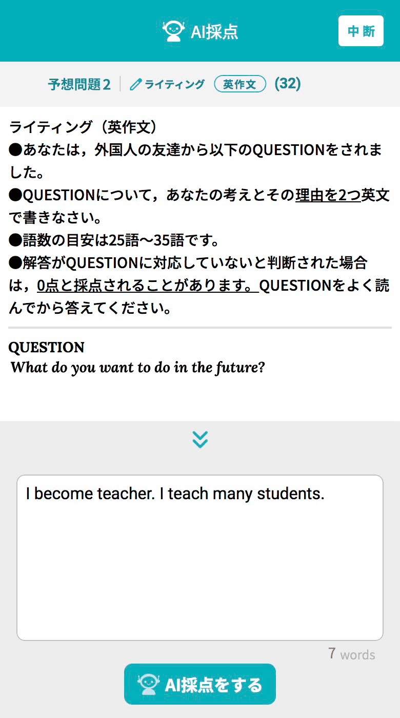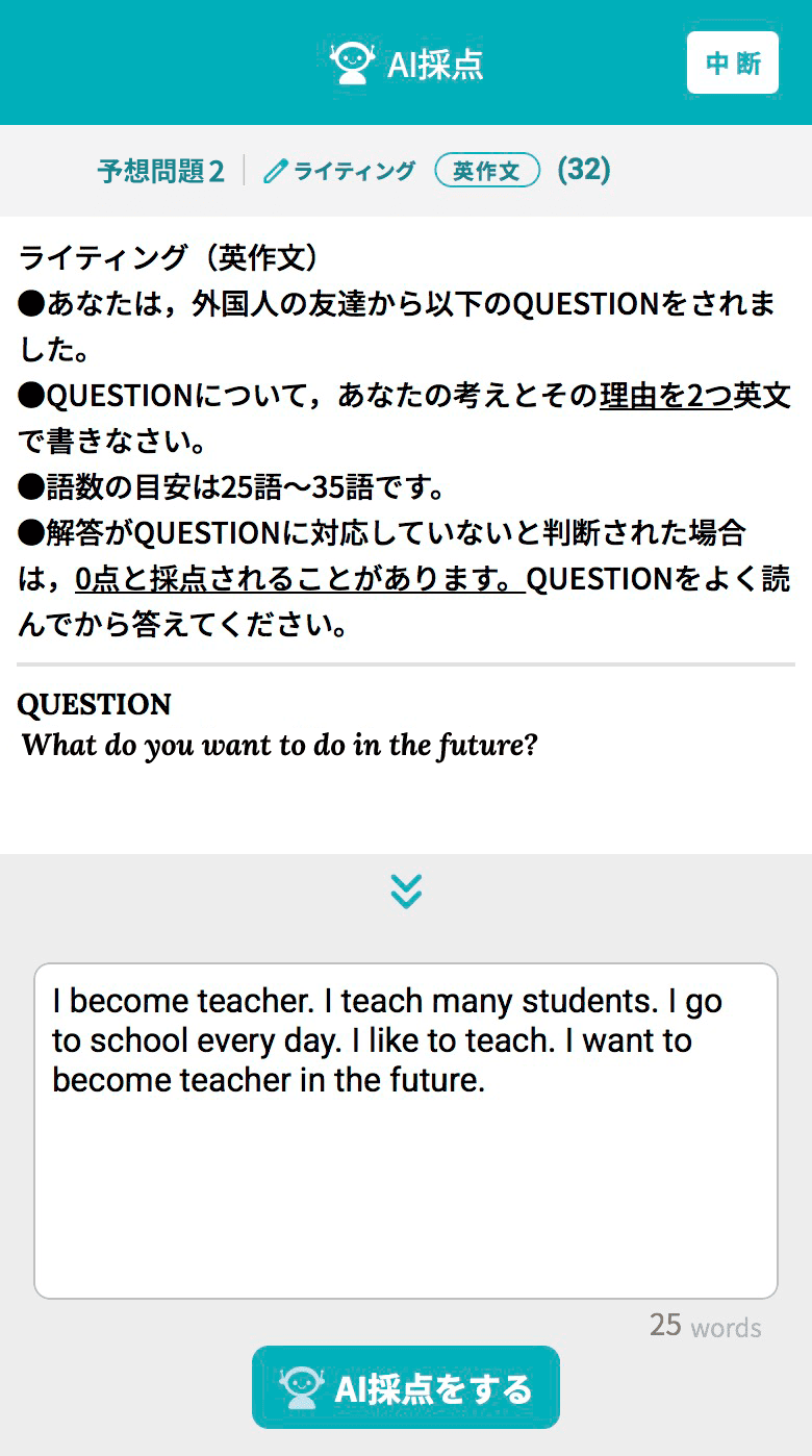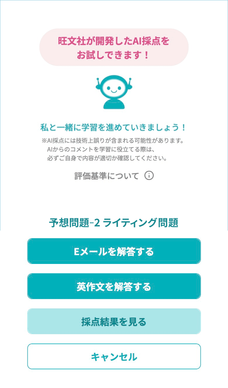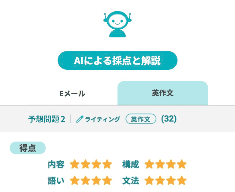 ※AI採点について公益財団法人 日本英語検定協会による如何なる監修も指導も受けておらず、採点の品質について同協会から認められたものでは一切ございません。