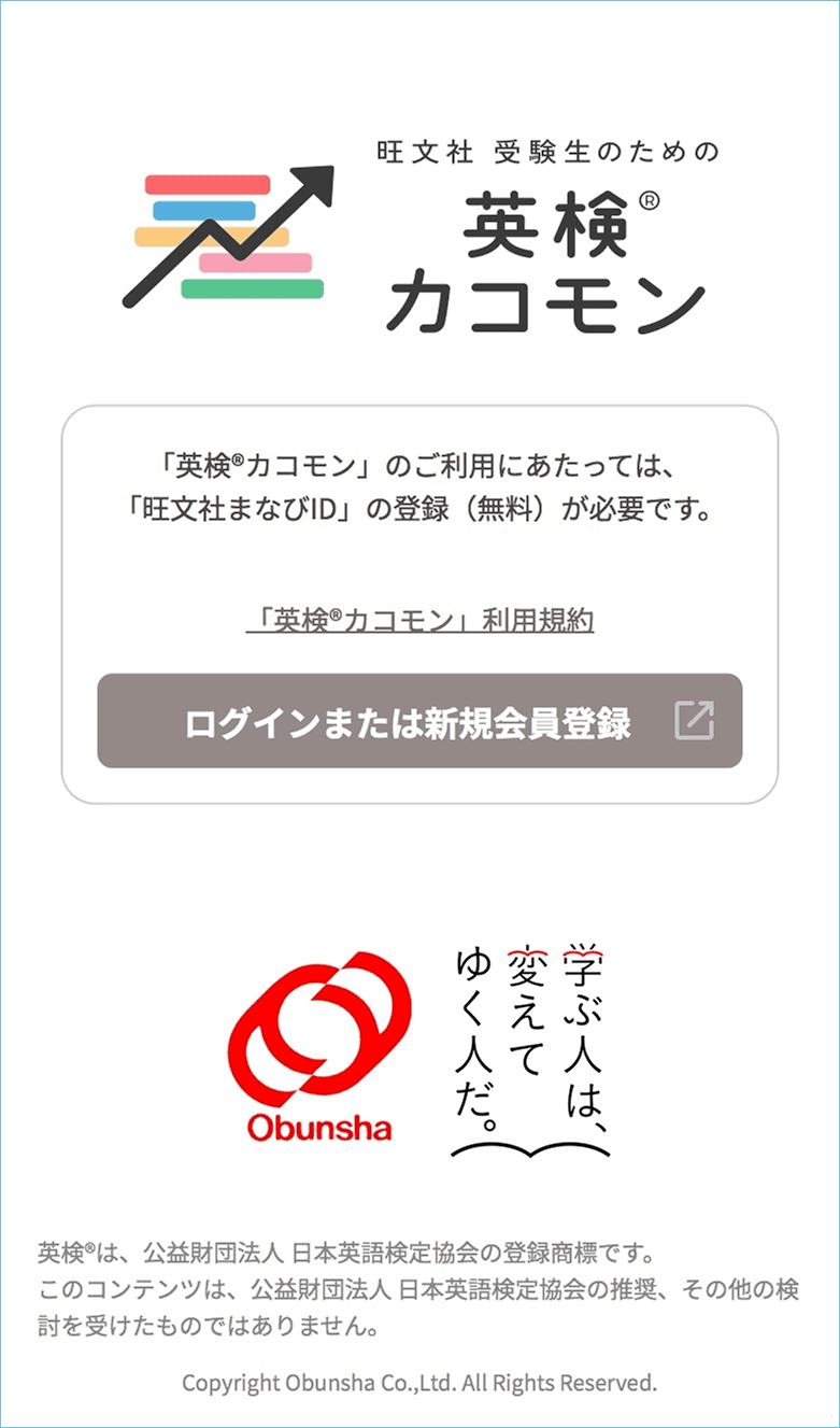 「英検カコモン」の有料コンテンツを初回ログインから24時間は無料でトライアルできます。利用には「旺文社まなびID(無料)」への登録が必要です。